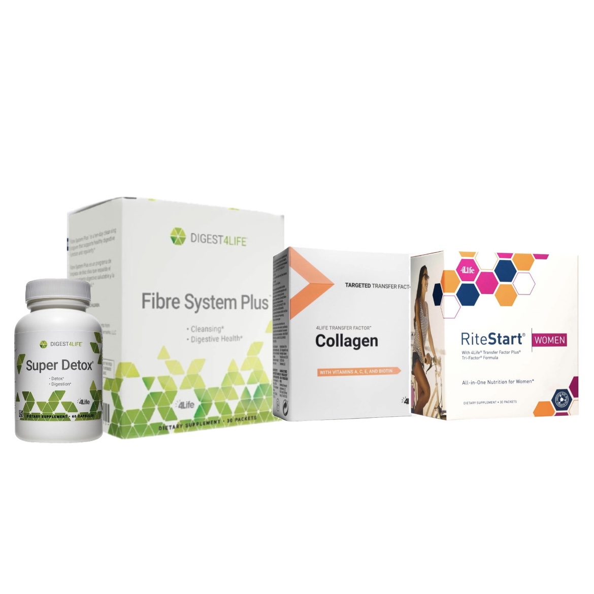 Женский комплекс здоровая и сияющая кожа — это сбалансированная программа внутренней поддержки красоты, объединяющая Fibre System Plus, Super Detox, Collagen и RiteStart Women. Комплекс создан для комплексного ухода за кожей изнутри, поддержки естественных процессов очищения организма и обеспечения его необходимыми нутриентами.